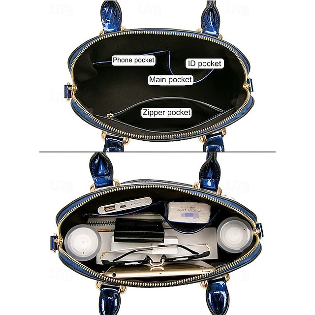 Women's Elegant Patent Shiny Tote Green Leather - Bag