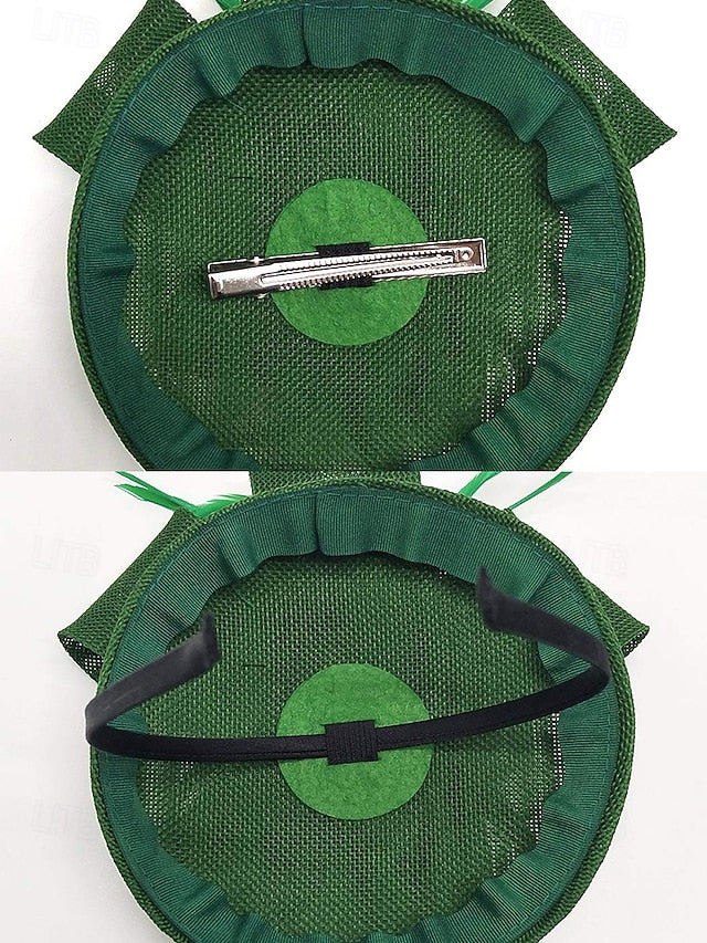 Women's Green Fascinator Hat with Bow and Feather Accents