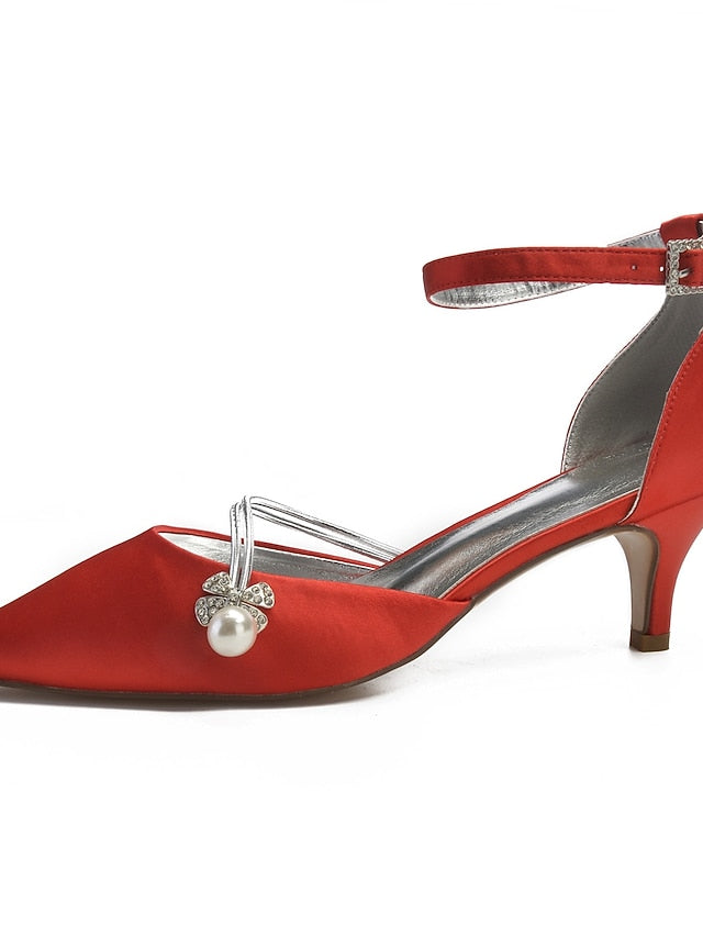 Women's Heels Pearl with Dark and Blue Kitten Satin
