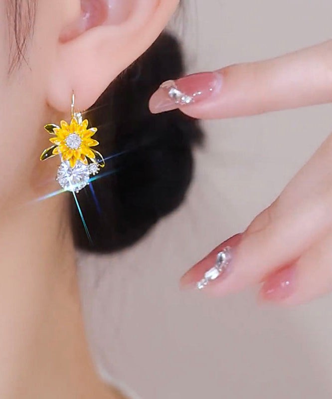 Zircon Overgild Drop Copper Gold Fashion Earrings Sunflower